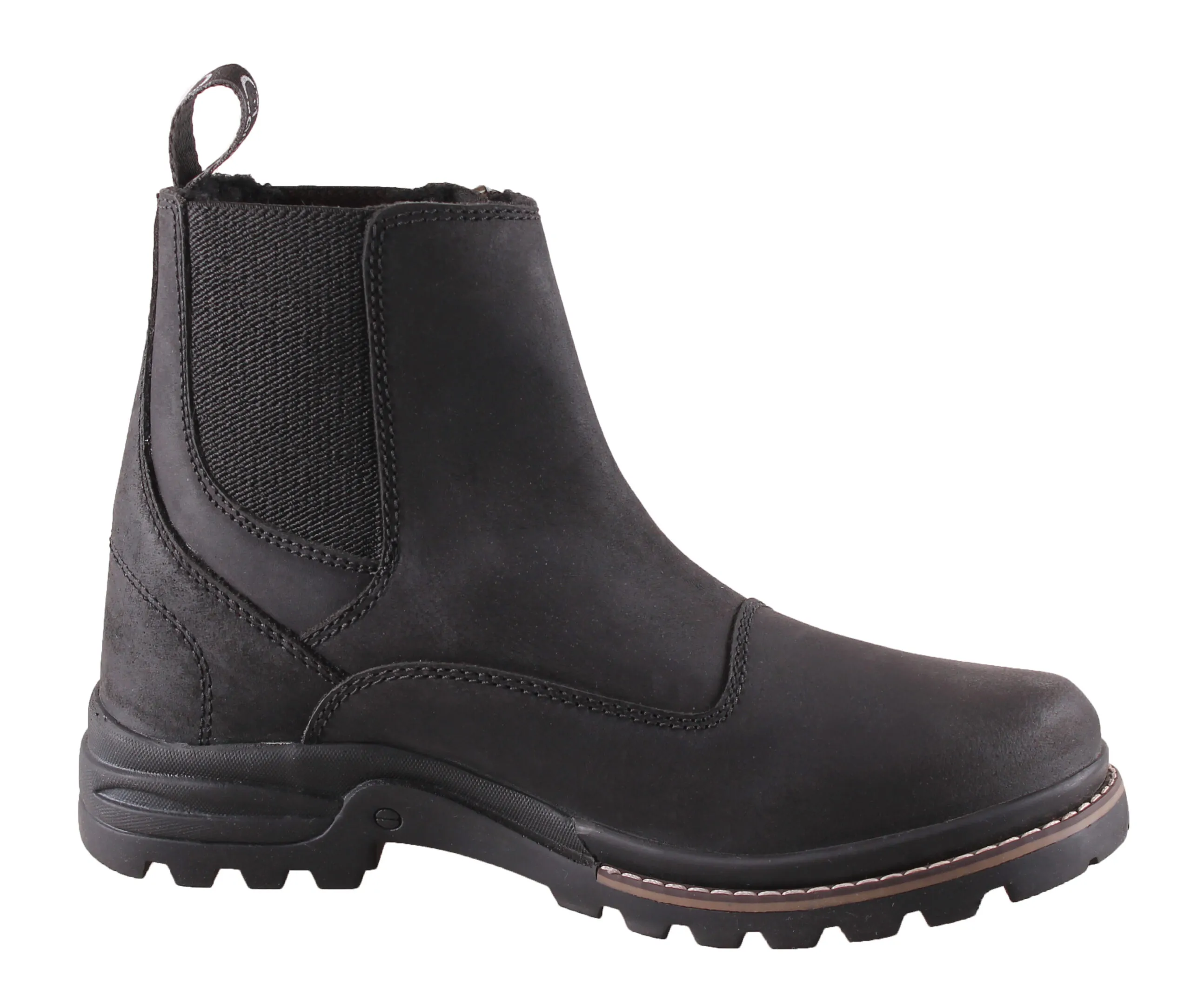 Praktisk jodhpur-støvle i robust og stærkt oilskind. Elastik i begge sider samt lynlås i den ene side, hvilket gør den dejlig nem at komme i. Rigtig god pasform. Skridsikker ydersål. Dejlig varmt foer i syntetetisk pels også på indersålen.. Perfekte til både ridning og fritid.