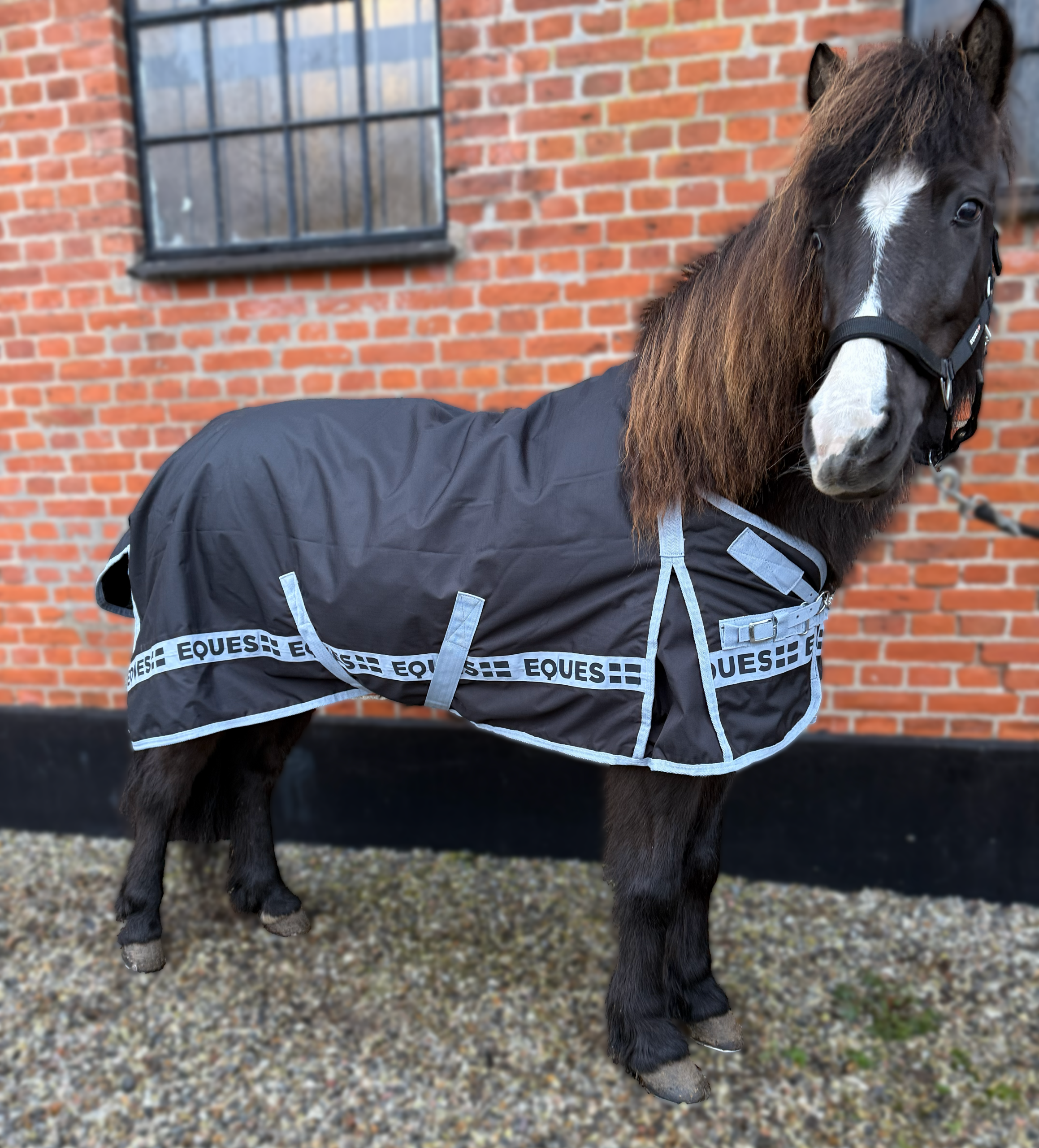 Materialet er både vandtæt og åndbart, hvilket sikrer, at hesten holdes tør og komfortabel under skiftende vejrforhold.